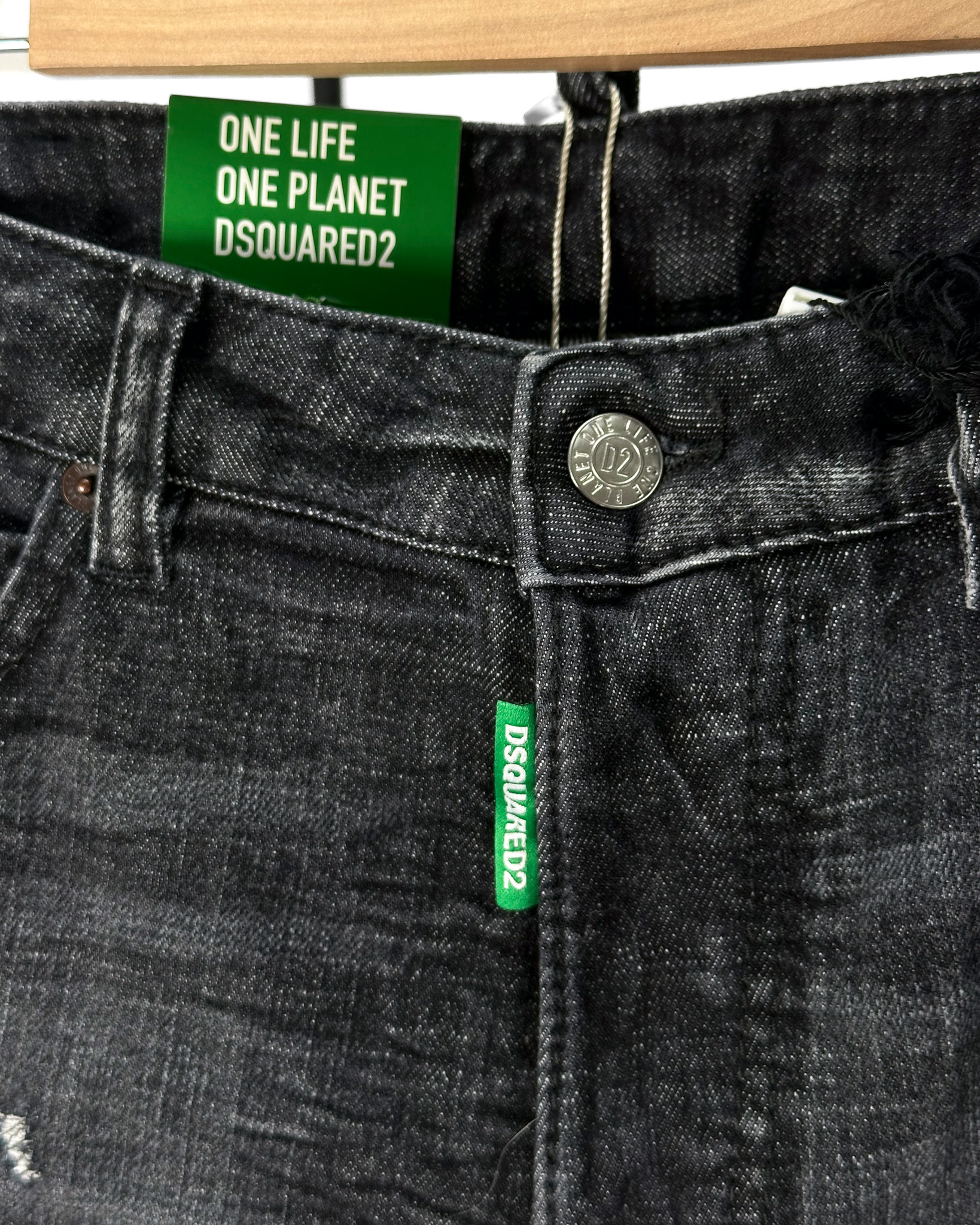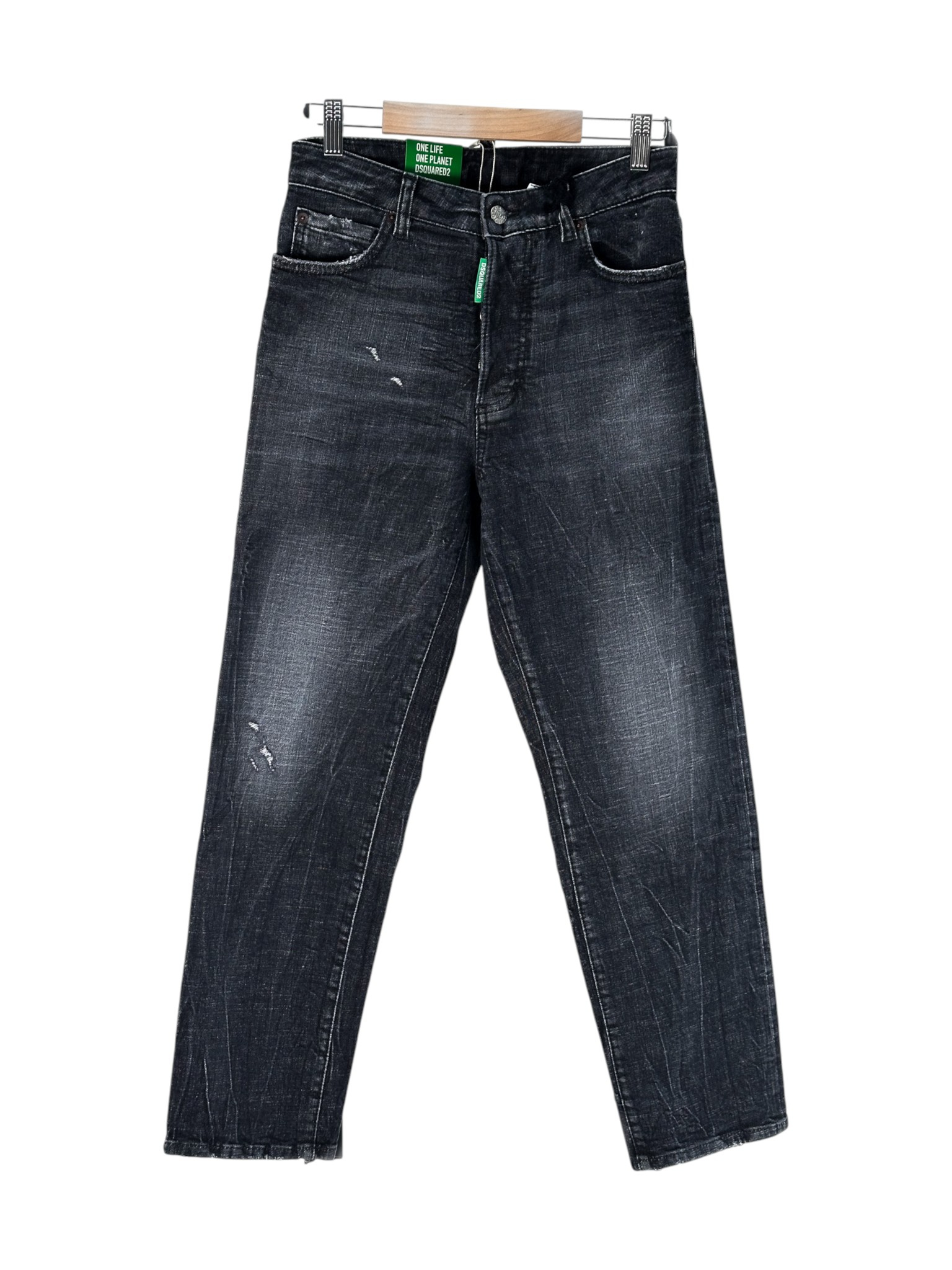 "Model: Boston Jean, spodnie jeansowe z wysokim stanem o prostym kroju, kolor ciemno-grafitowy, lekko przecierane, rozmiar S. Nowe z metkami."