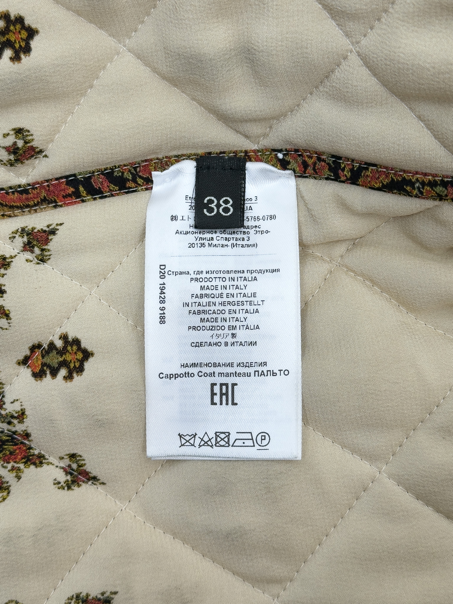 "Beżowy kardigan zapinany na złote guziki, kolorowa podszewka ( odpinana) w kolorach charakterystycznych dla marki. Rozmiar z metki 38. Skład: 45% wełna, 30% wiskoza, 25% kaszmir. Wymiary: szerokość mierzona od pachy do pachy 51cm, długość całkowita 69cm."