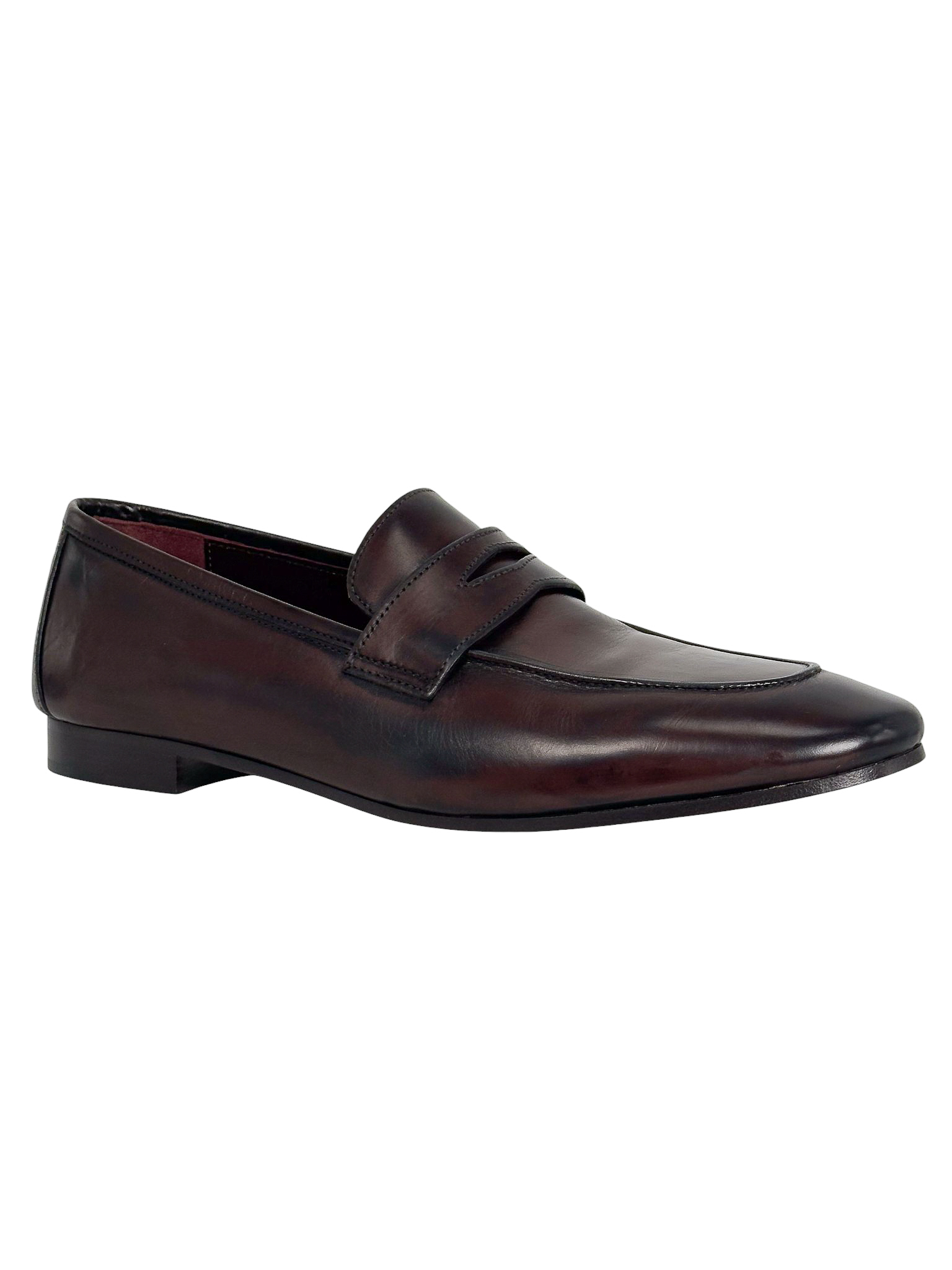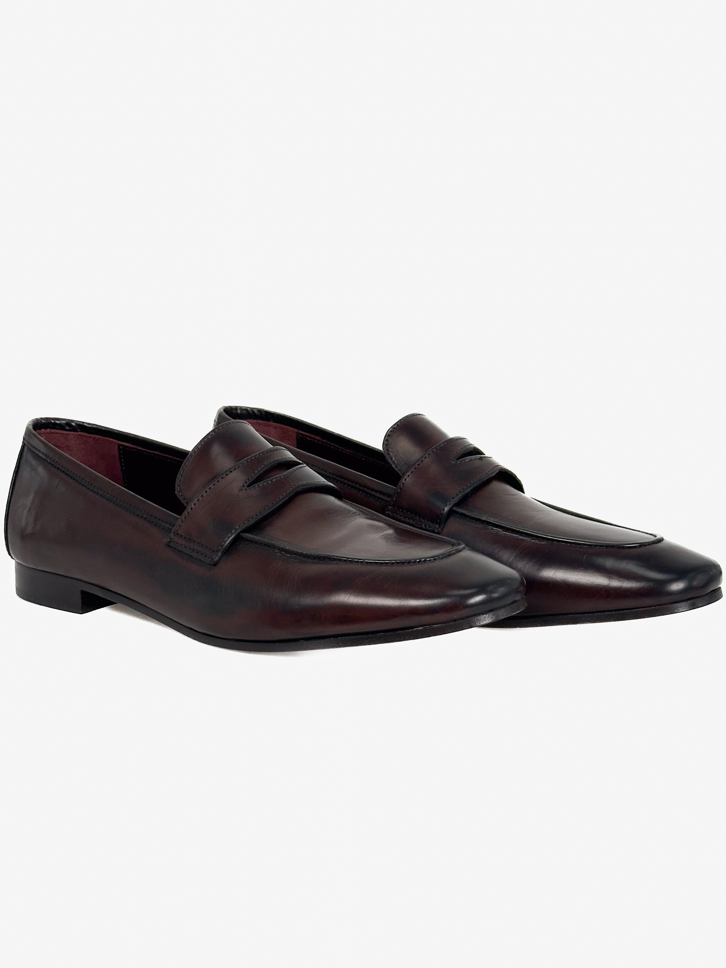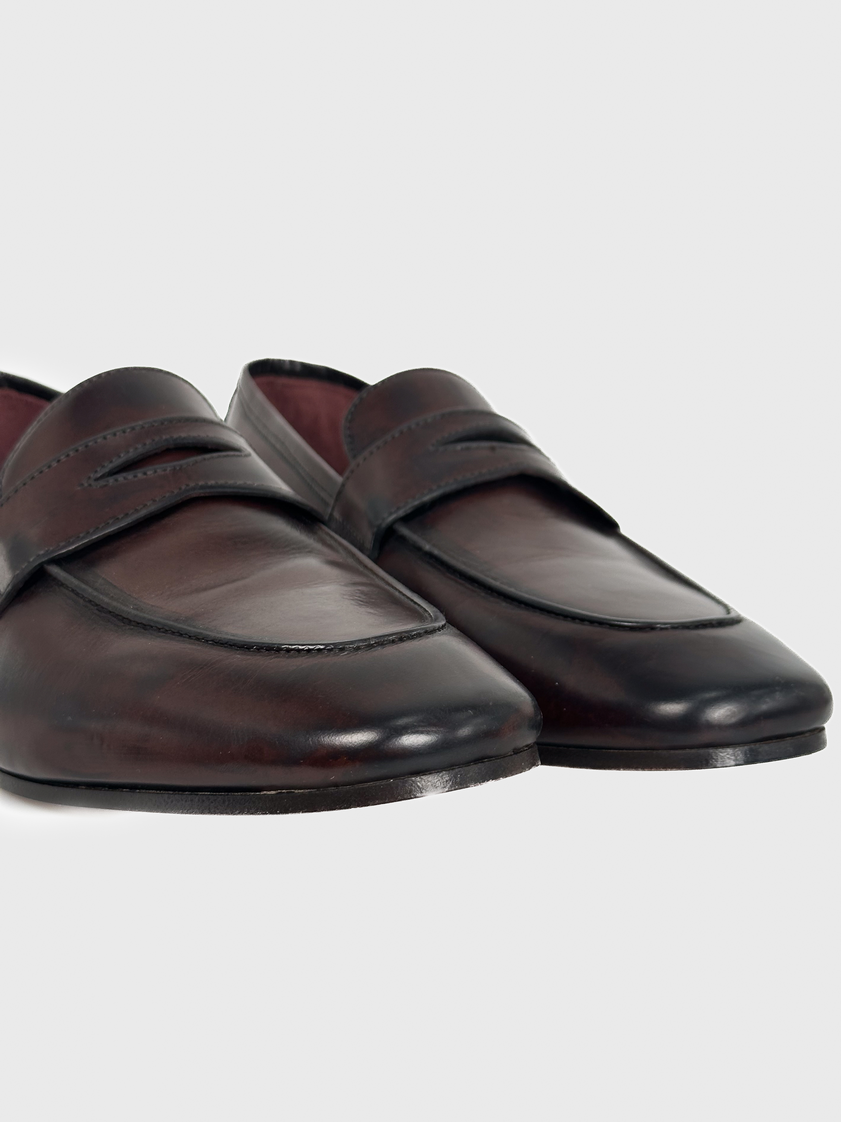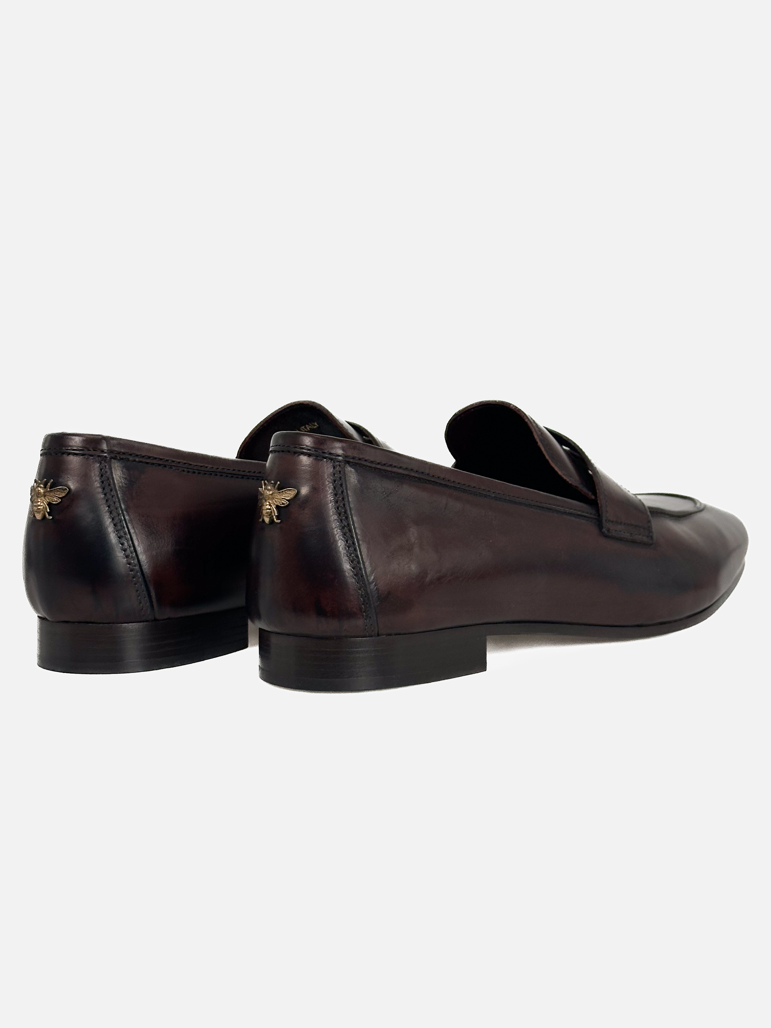 "Skórzane mokasyny w kolorze burgundowo-brązowym, z tyłu złote logo marki, noski obcas, migdałowe noski. Nowe z pudełkiem, rozmiar 39."