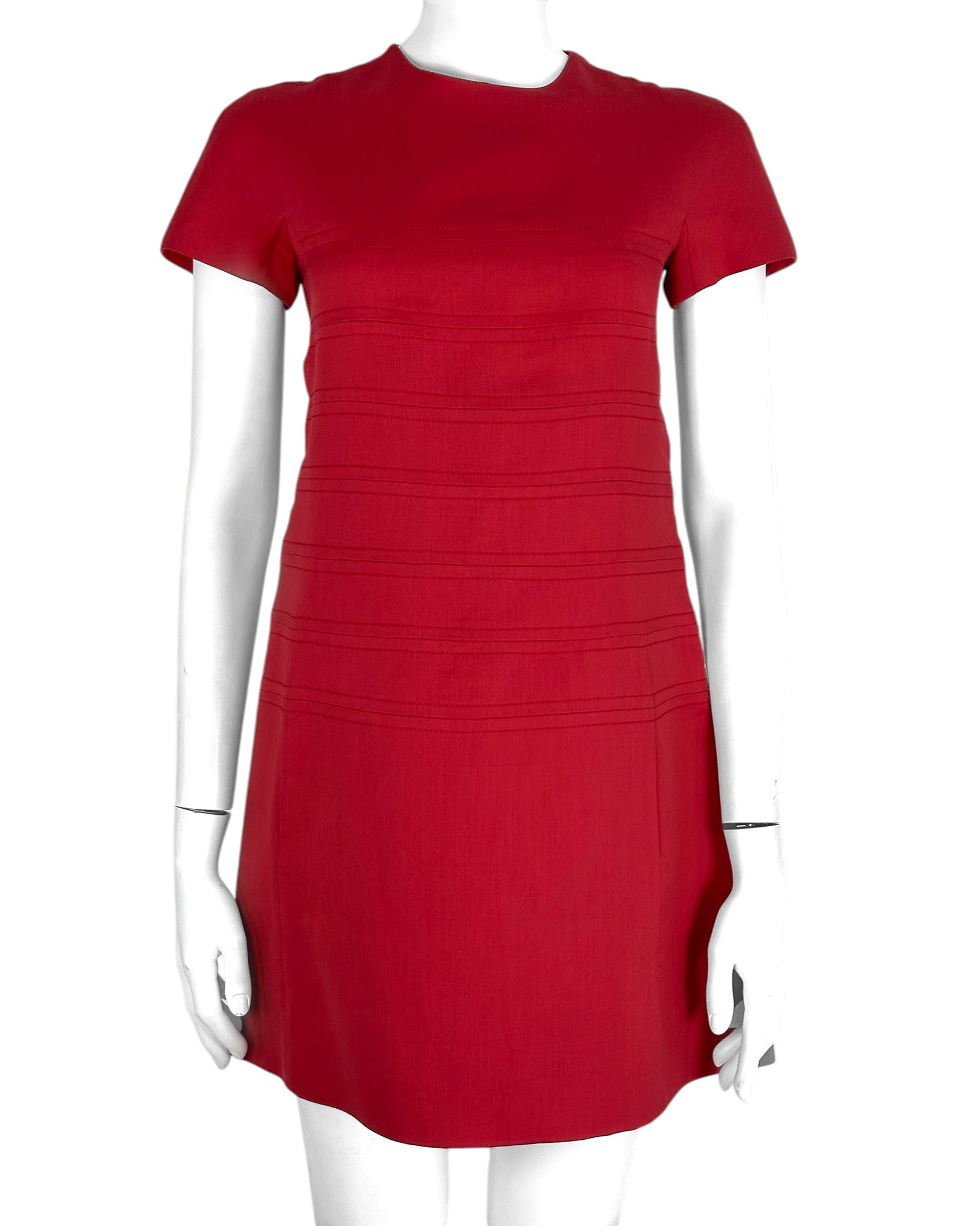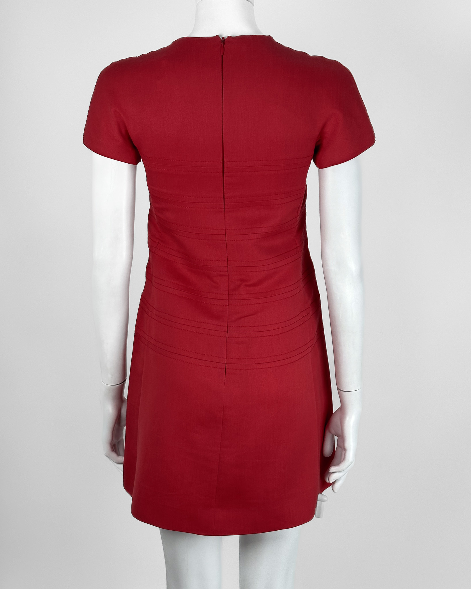 "Czerwona sukienka przed kolano. Skład 52% bawełna, 48% jedwab. Podszewska 100% jedwab.