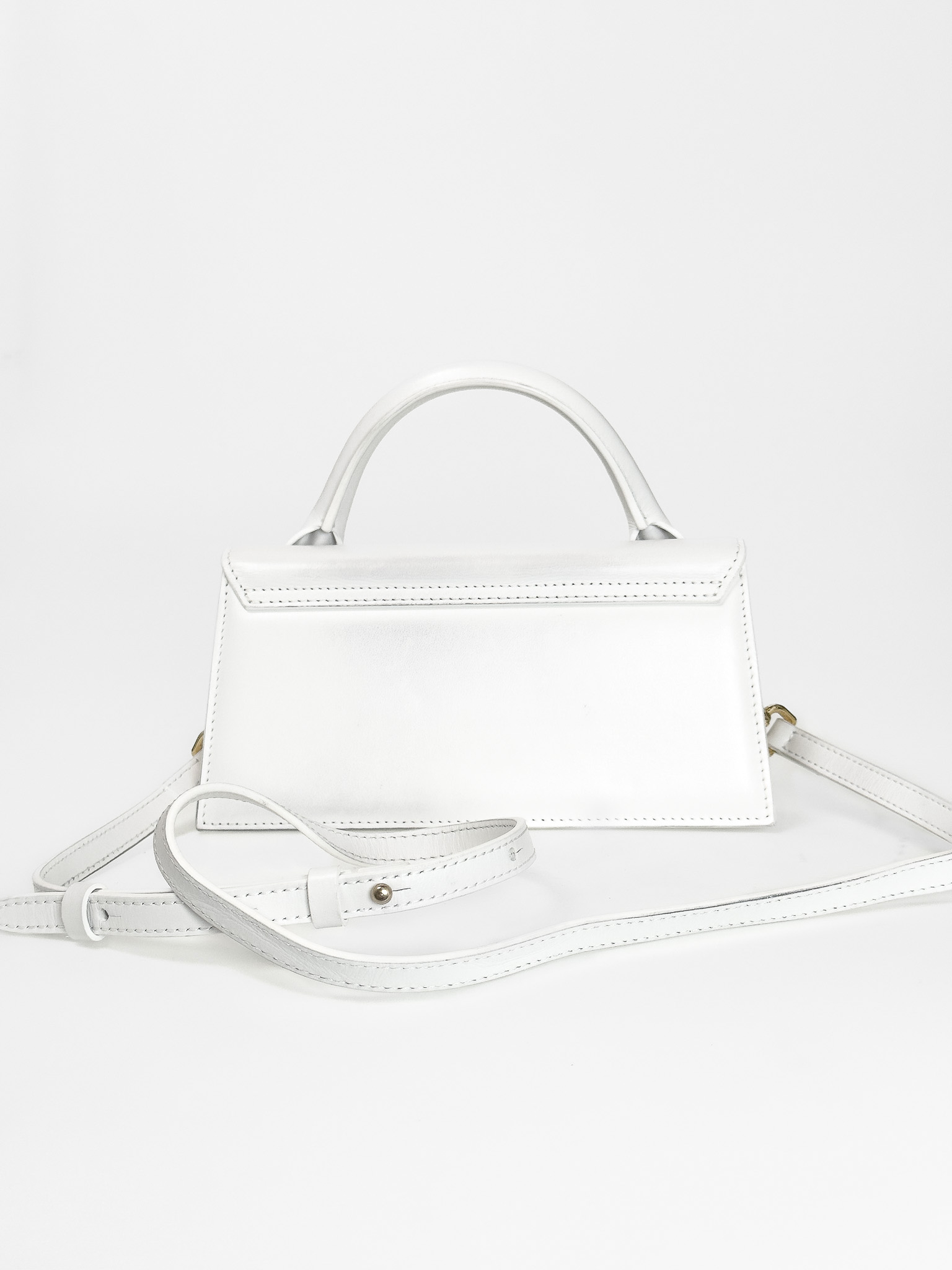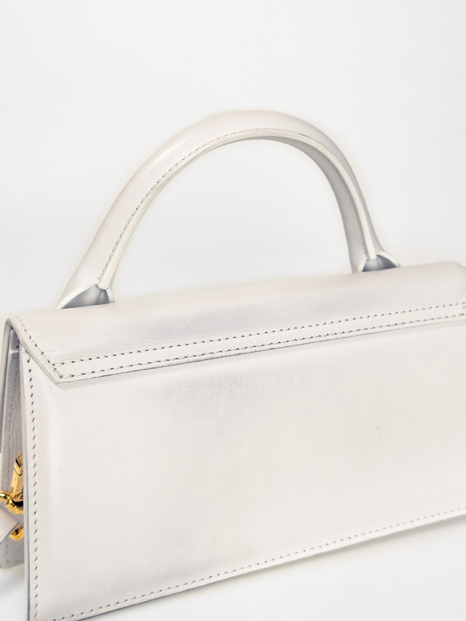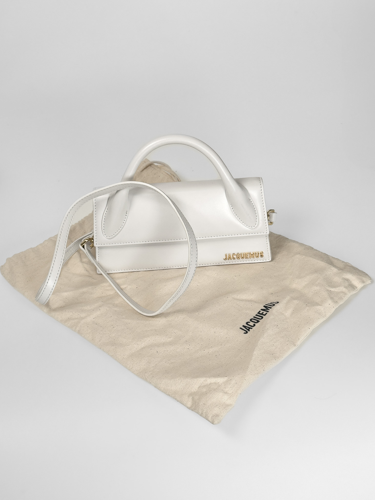 "Model: The long Chiquito; Biała skórzana torebka, uchwyt do ręki, długi regulowany, odpinany pasek na ramię, wąski, trapezowy kształt, ozdobiona złotym logo marki, dwa zapięcia pod klapą, jedna duża komora z kieszenią wewnątrz, w zestawie z workiem przeciwkurzowym. Stan dobry, posiada delikatne przetarcia na rogach oraz zabrudzenia w bocznej części. Wymiary: szerokość 21,5cm, wysokość 11cm, głębokość 5cm."