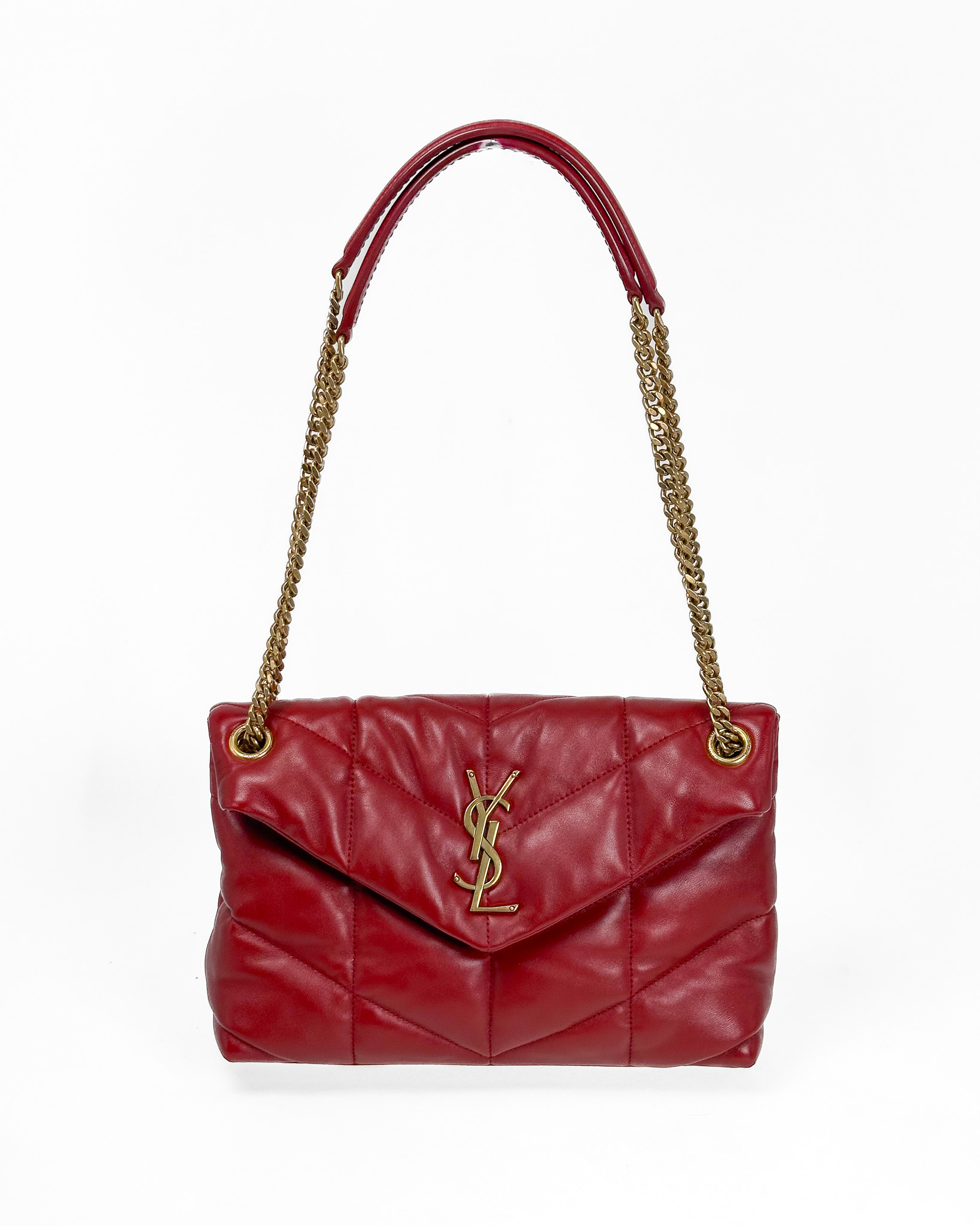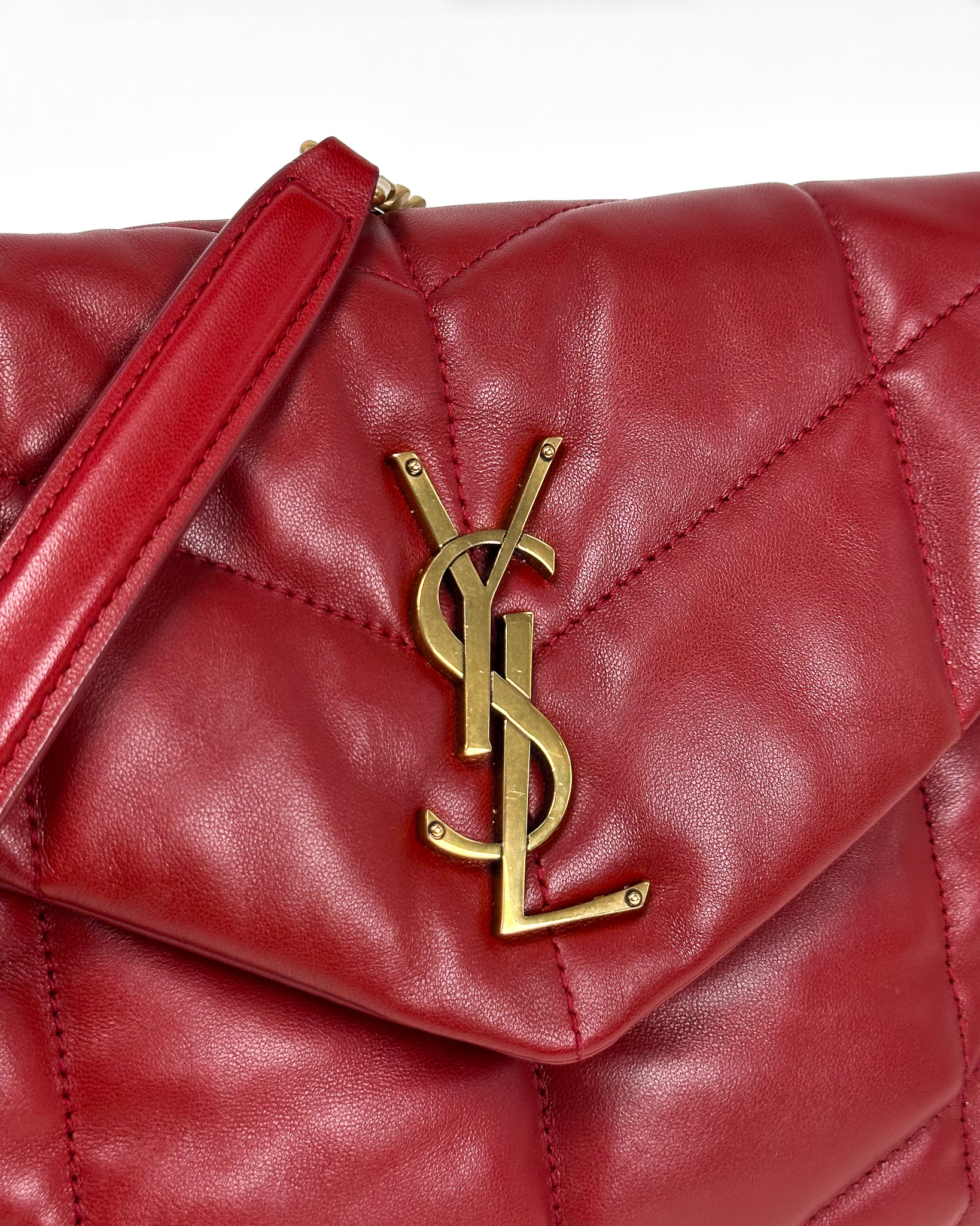 "Czerwona torebka model Puffer Small, złote okucia, logo na przodzie. Wymiary: 29 X 17 X 11 CM. Zakupiona w Vitkacu, worek przeciwkurzowy w komplecie."