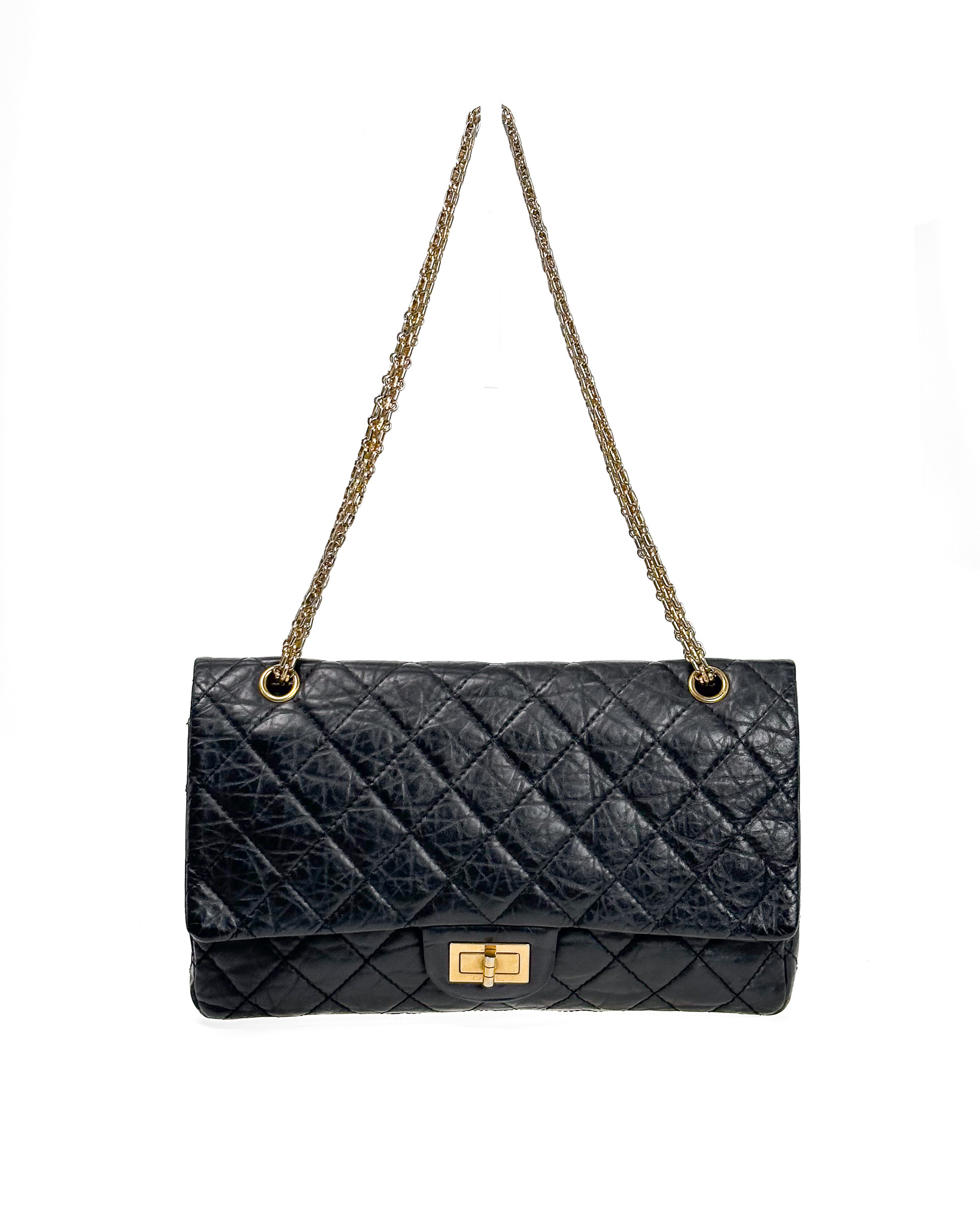"Czarna torebka z gniecionej skóry, złote okucia. Model Reissue Rozmiar JUMBO."